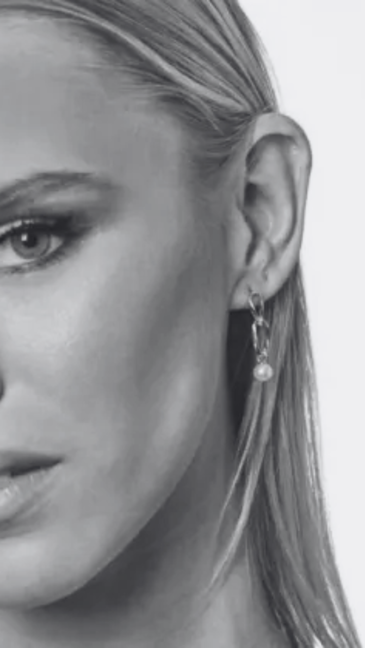 Double Link Freshwater Pearl Drop Earrings in 9ct Yellow Gold