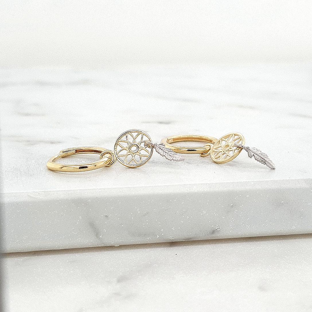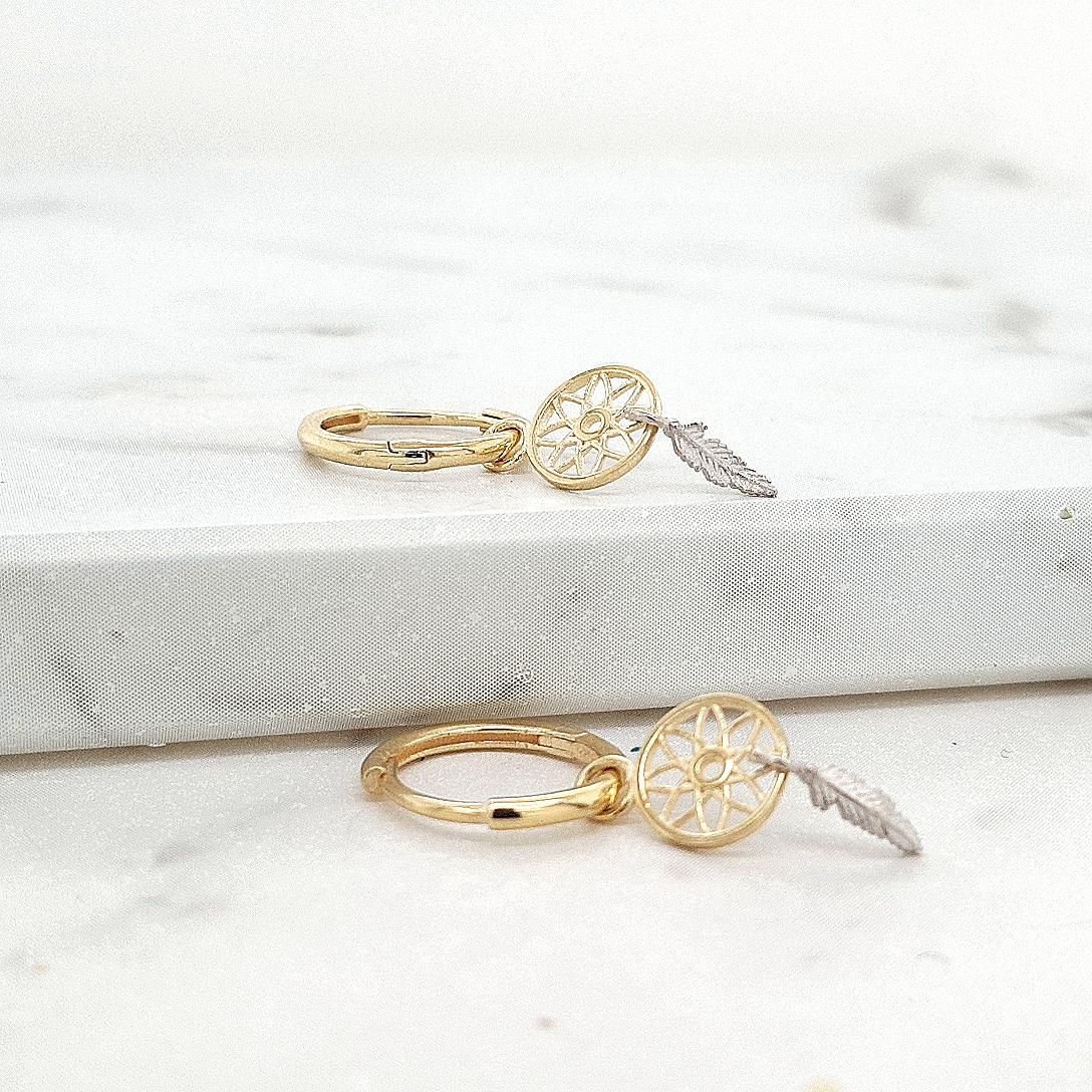 9ct Yellow Gold Dream Catcher Drop Huggie Earrings