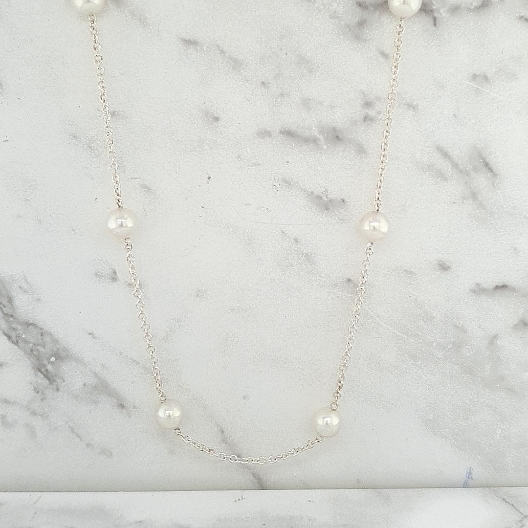 Sterling Silver Oval Belcher Chain with 5mm White Pearls - Necklace