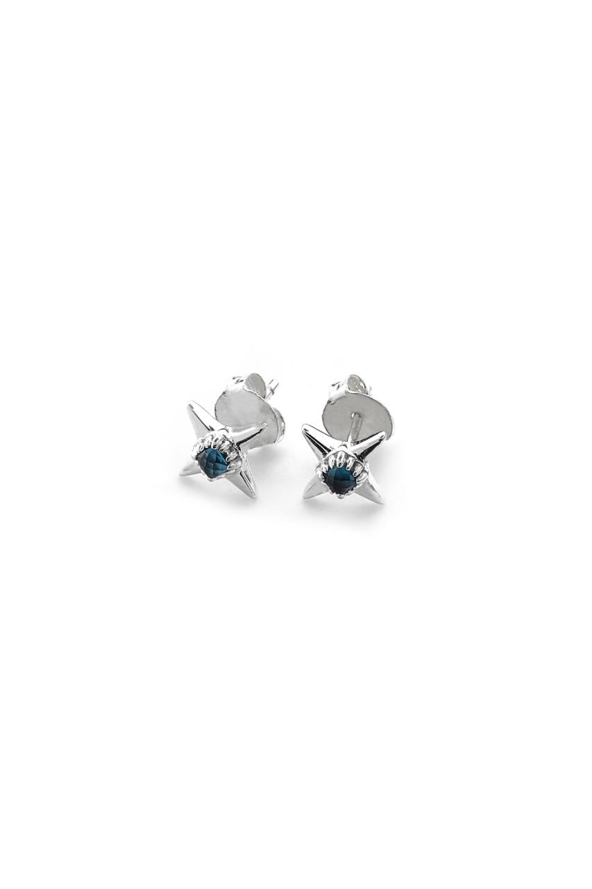 Stolen Girlfriends Club Sterling Silver Ninja Star Stud Earrings with London Blue Topaz